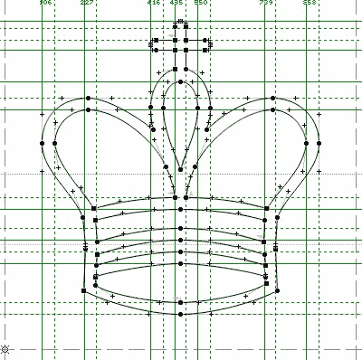 Im Nachfolgenden habe ich eine Liste der Schlüsseldimensionen aller Glyphen beider Zeichensätze aufgelistet. Aus ihr geht schon ziemlich deutlich hervor, wo die noch vorhandenen Schwächen liegen. Zum Beispiel ist die Strichstärke mit 1/3pt# definiert, womit PostScript das Problem mit »halben« Punkten bekommt (33 Einheiten / 2).