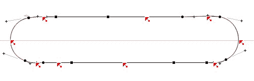 Angenommen die Strichstärke thin beträgt 1/5pt#, so ergeben sich z.B. die PostScript-Stützpunkte (90,250), (100,260), (100,240), (600,240), (610,250), (600,260).